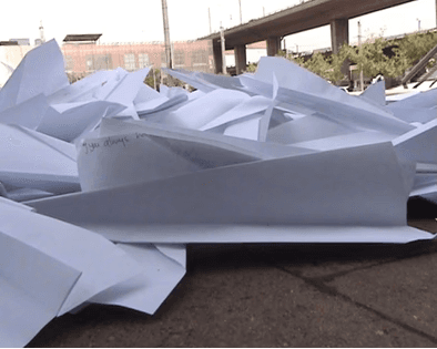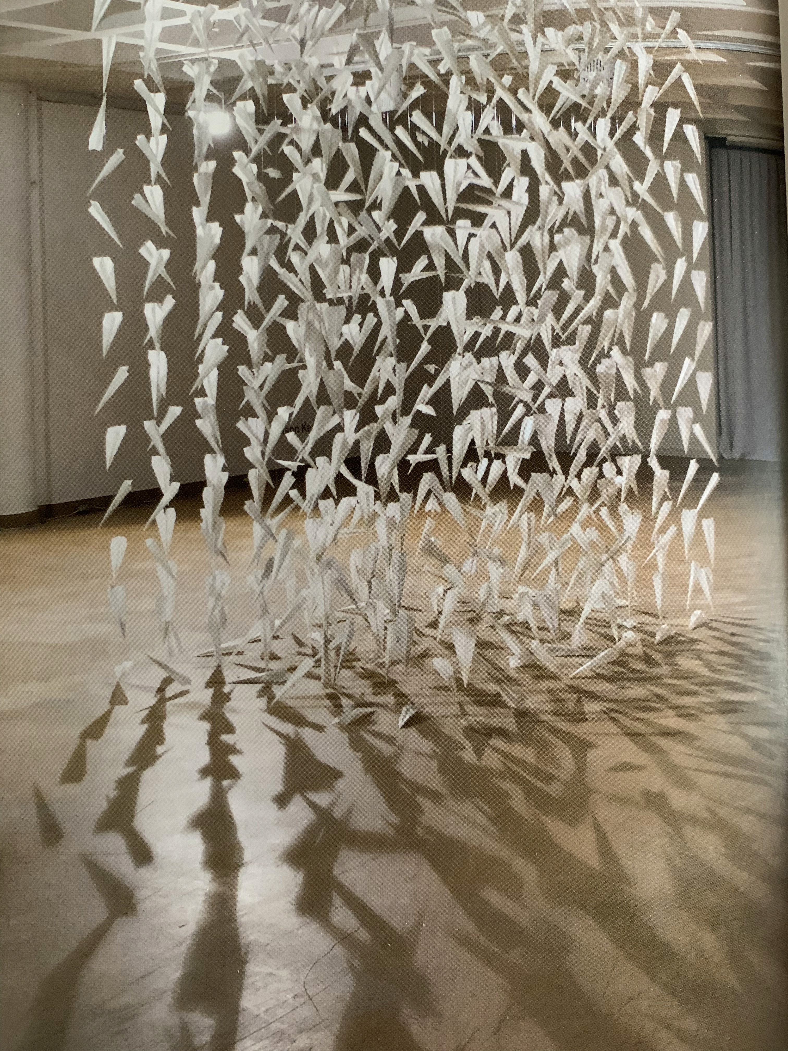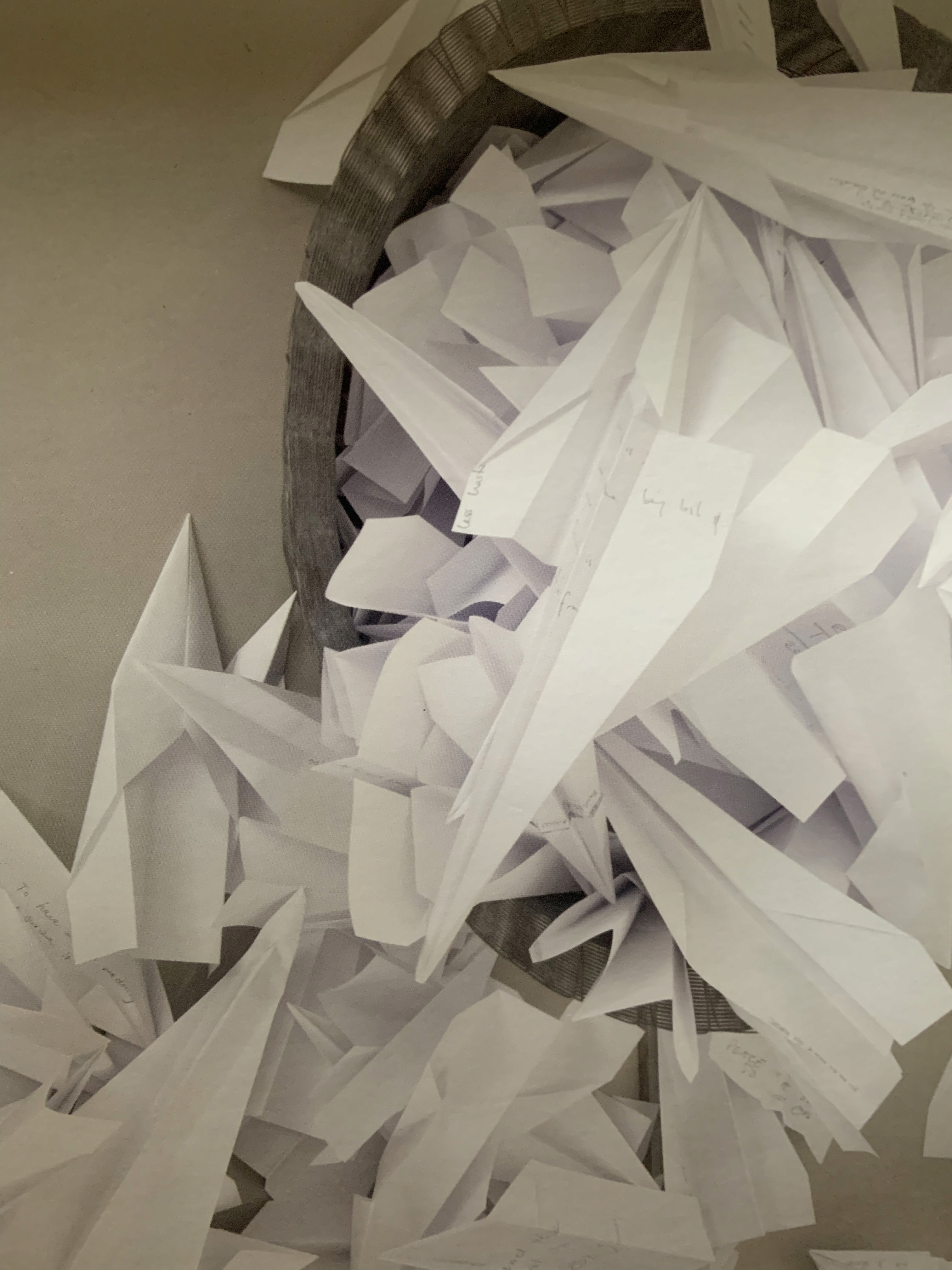 When distributing the precious paper planes, I was hoping that passers-by would pick them up and read the inscriptions. Multiple dialogues are explored in this work. The artist is messenger, and each paper plane is a point of communication, creating a dialogue between the people who made the planes, and those who received them. It is a work about communicating, responding to each other, about wishful thinking, and a poignant reminder that not all wishes come true but that does not mean that all hope is lost.