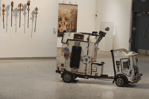 This exhibition was made up of artworks that belong to the Wits Art Museum collection. Each artwork was carefully chosen because the artists used objects that they did not make themselves in their artworks. We refer to these features as ‘found objects’. A found object may be a whole or a fragment. A ‘readymade’ is one type of found object. The term was first used by the French artist Marcel Duchamp to refer to artworks that were made from found objects that he did not change very much, as a way of challenging Western ideas about what counted as art.